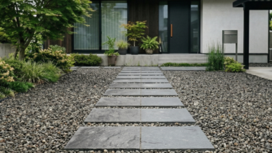 エクステリア 玄関前の車寄せをタイルでつくる|乗用車対応の舗石タイルで叶える高級外構