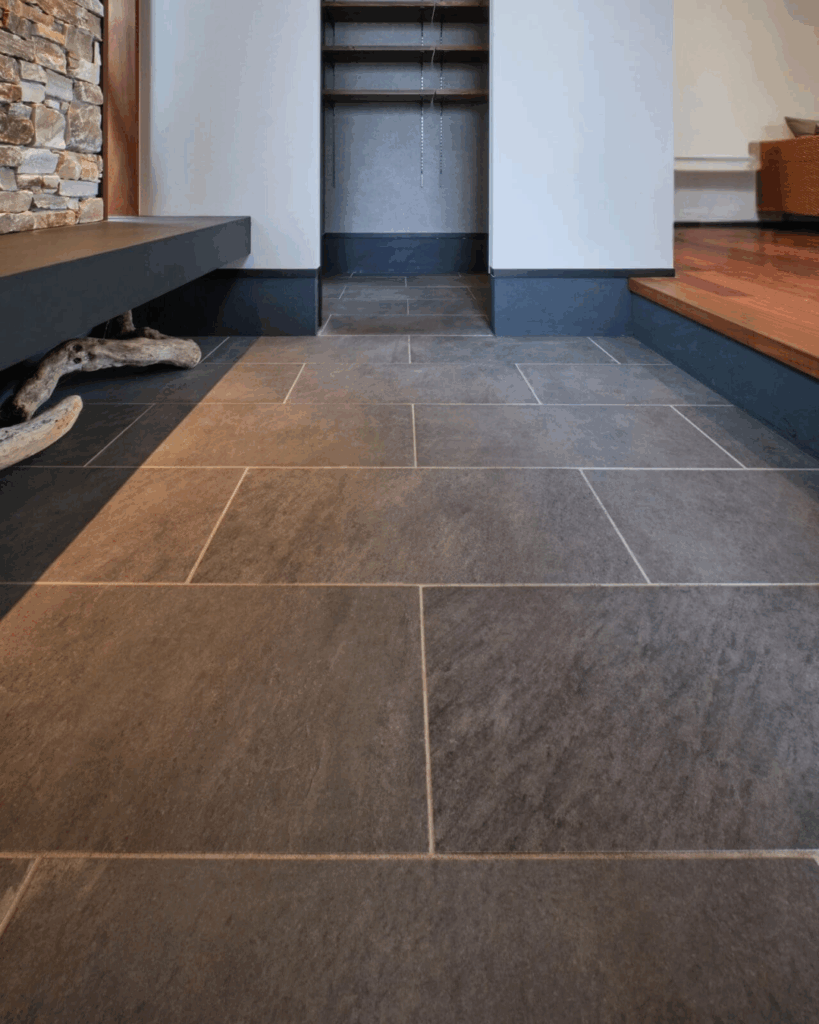 玄関には安全性を重視した「グリップ」のタイルを使用します。寒冷地にも使用できる耐凍害製品です。