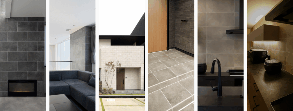天然石の豊かな表情を持ちながらも、タイルならではの扱いやすさを備えています。木や植物など自然素材との相性もよく、穏やかで心地よい空間を演出します。