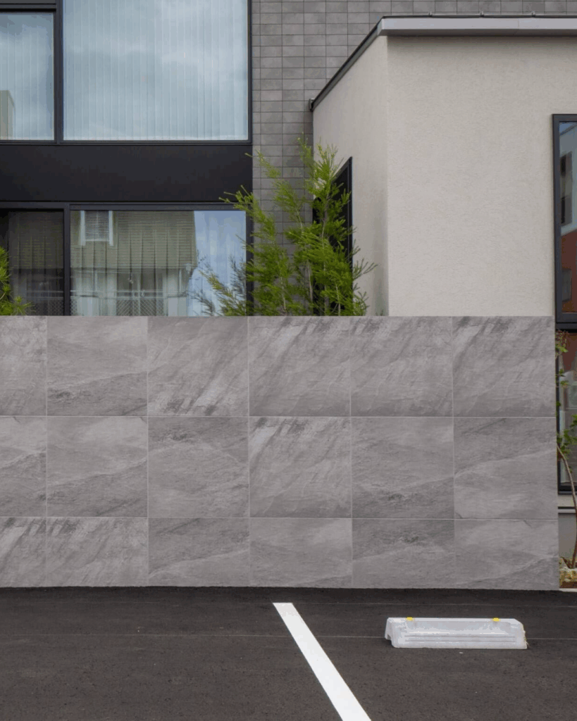 柔らかさのあるコンクリートをデザインしたタイルです。シンプルな美しさが高評価。耐久性が高い磁器質タイルです。