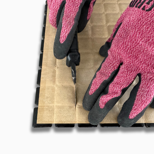 施工面に合わせて余分な部分は切り離してください。少々の隙間は目地材で埋めるように仕上げます。