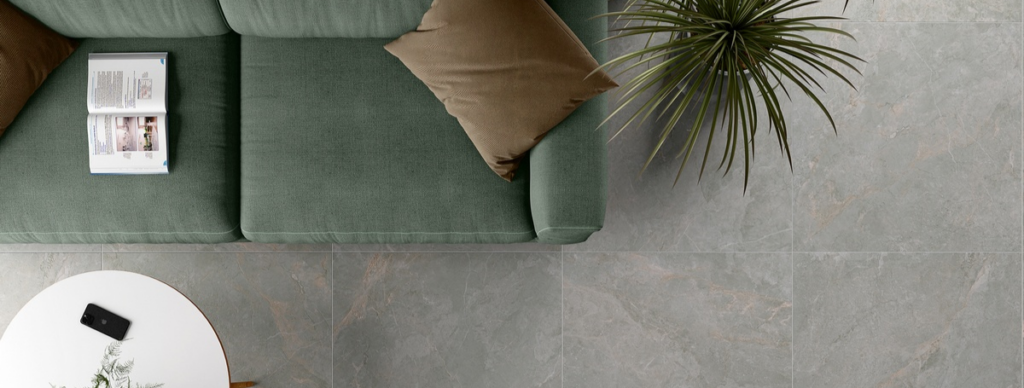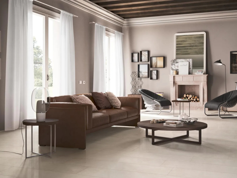 長く過ごしても疲れない、居心地を大切にしたい空間には、ブラウン調の大理石調タイルがおすすめ