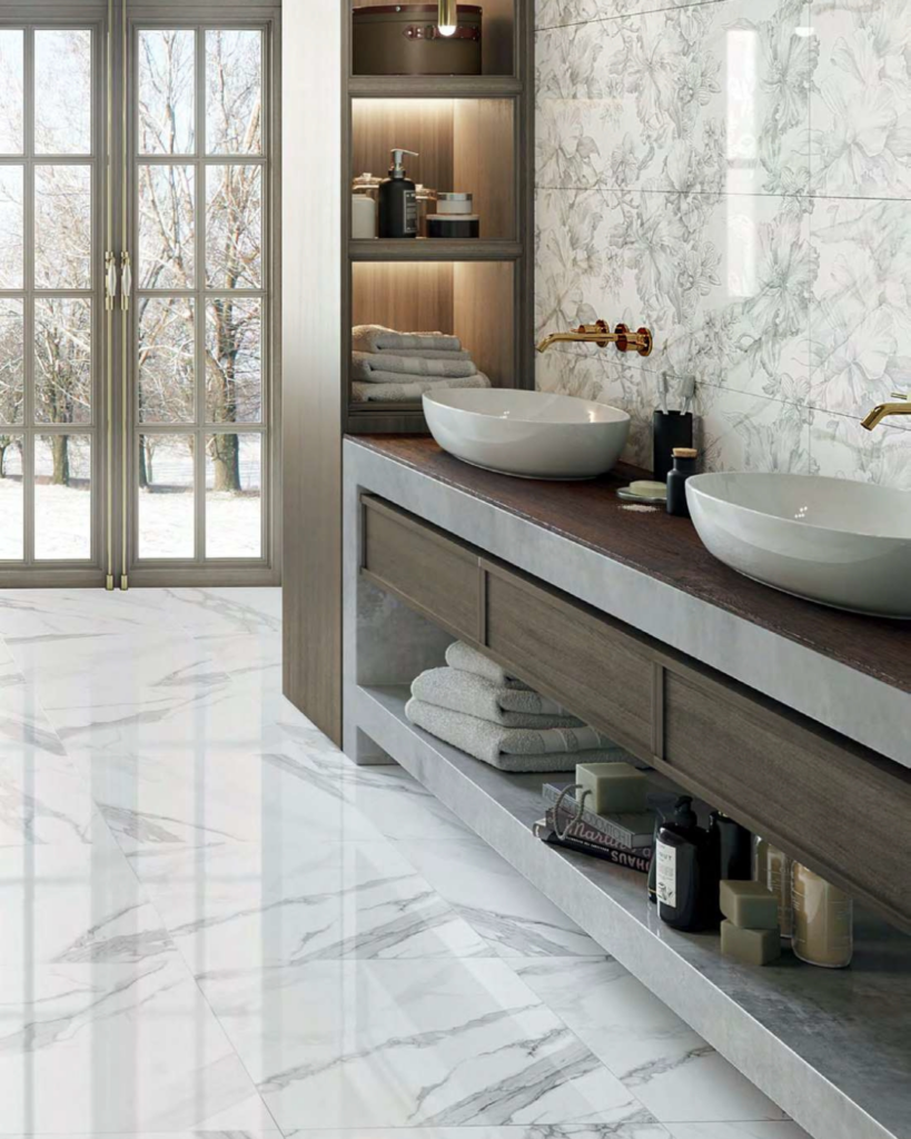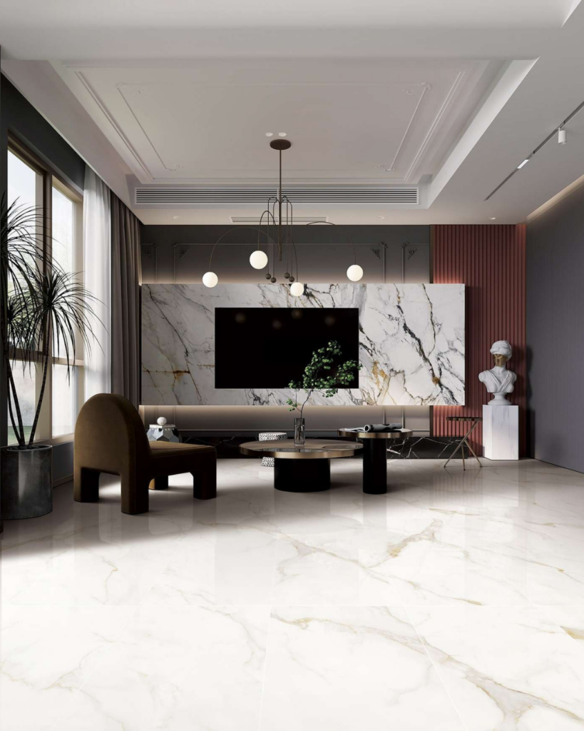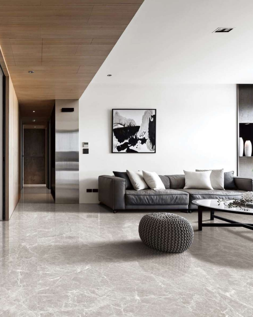 無釉磨きタイルで揃えたナチュラル系大理石調タイル。大人のナチュラル系空間に仕上げます。