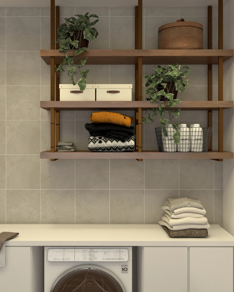 廊下やエントランスなど、家の中でも殺風景になりがちな場所があります。家具や装飾品ではなく、天然石調タイルで壁に質感をプラスすると機能を邪魔せず、温かみのある空間に。