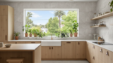 明るく暖かなベージュ系の石調タイルは、カジュアルになりすぎず、ナチュラル感に上質さを加えた空間を作ります。明るい西海岸リゾート、北欧インテリアなどにおすすめです。