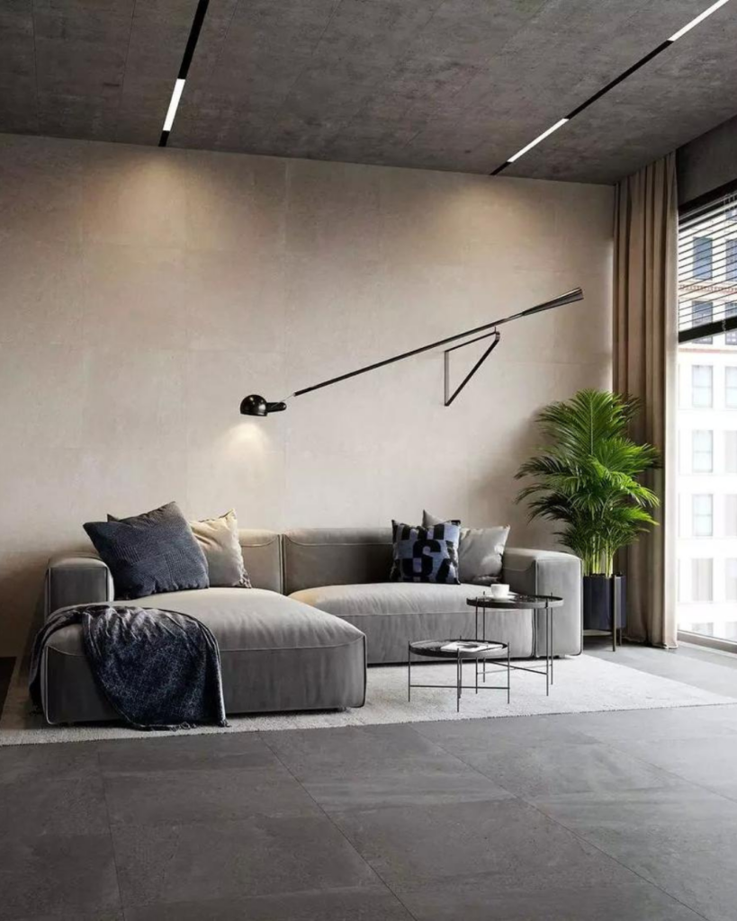 ナチュラルモダンに高級感を足したいなら、まず検討したいのがコンクリート調タイルです。