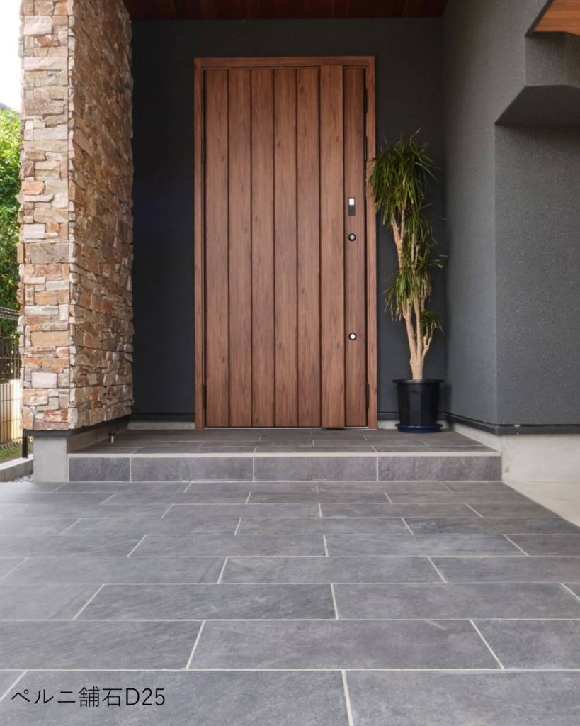 砂や土の色と自然になじむため、外構やアプローチとのつながりも良く、ナチュラルな住宅との相性は抜群です。暗くなりすぎず、それでいて落ち着きもあるため、玄関を広く見せたい方にも選ばれています。