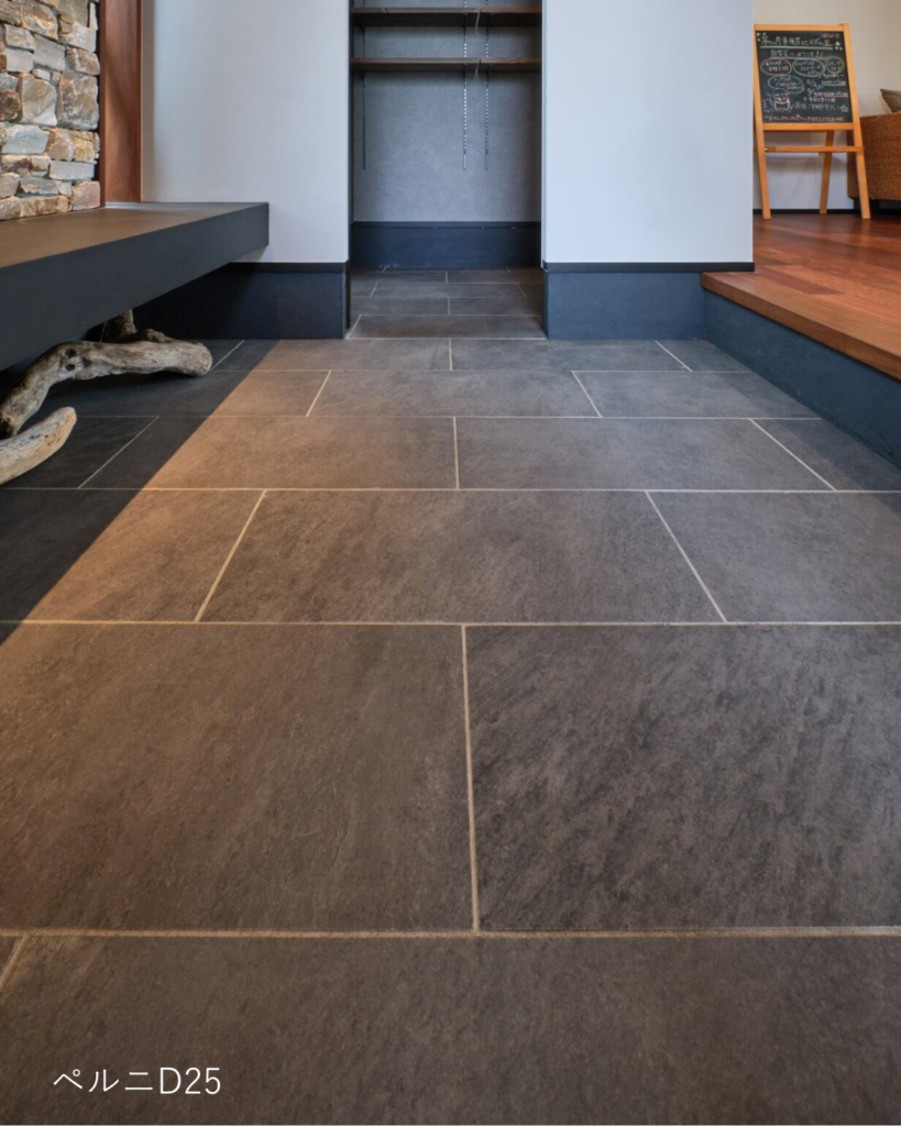また、砂ぼこりや土汚れが目立ちにくい点も玄関向き。見た目の上品さと実用性を両立できるため、「失敗しにくい玄関タイル」として支持されています。
