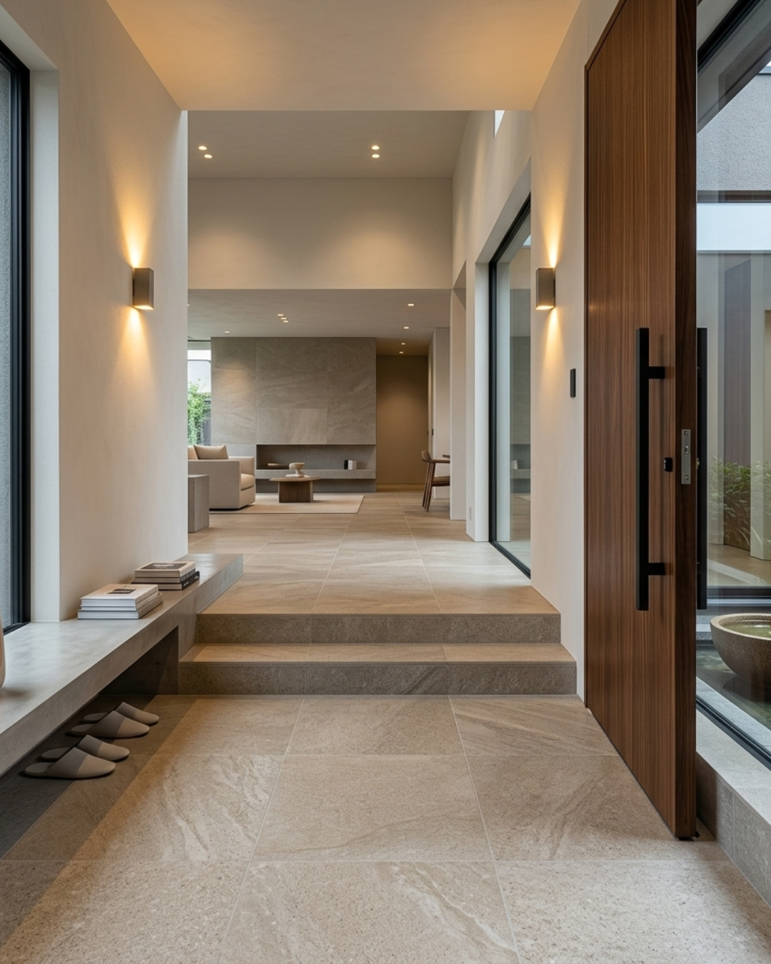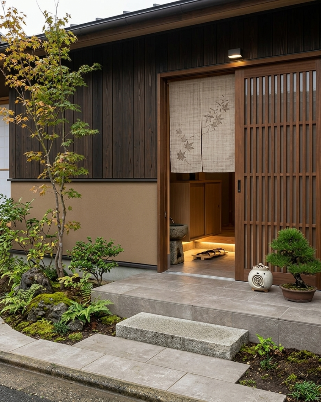 光や目地の色によって表情が変わるのも、この色の魅力。ほんの少しの選び方で、玄関の印象はぐっと上品になります。