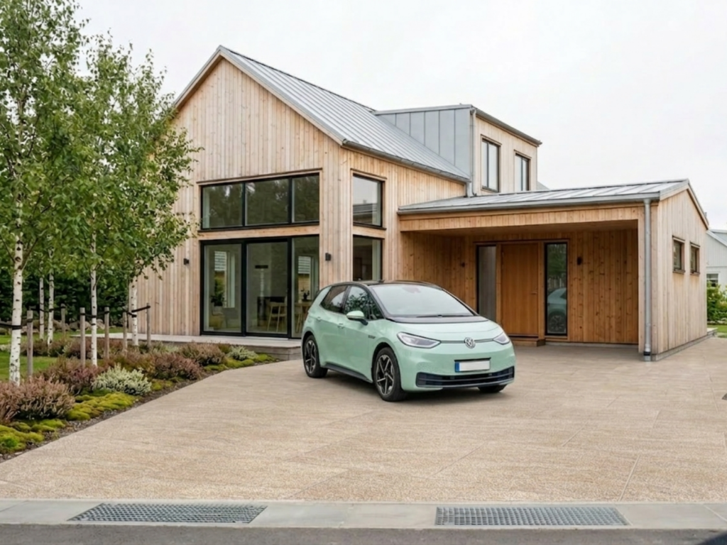 駐車場タイルは、機能性だけでなくデザイン性も重視したい方に向いている外構素材です。コンクリートとは違う質感があり、住宅の外観や外構デザインにこだわる方に選ばれています。