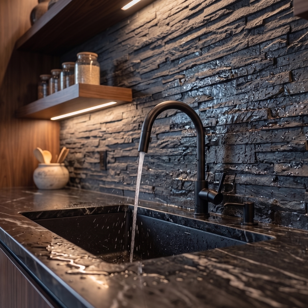 天然石は自然素材のため、水分や汚れの影響を受けやすい特性があります。そのため、キッチンのシンク周りや浴室など、水が直接かかる場所へ天然石をそのまま施工するのはあまりおすすめできません。汚れが入り込みやすく、メンテナンスの手間が増える原因になることがあります。