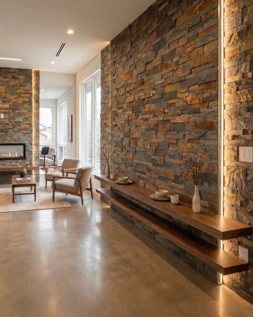 天然石の壁は、どこに使うかによって空間の印象が大きく変わります。同じ素材でも、選ぶ場所を間違えると魅力が伝わりにくくなり、逆に適切な場所に使えば、それだけで空間全体の質が引き上がります。